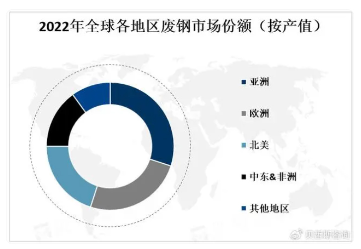 2022年全球各地区废钢市场份额(按产值)